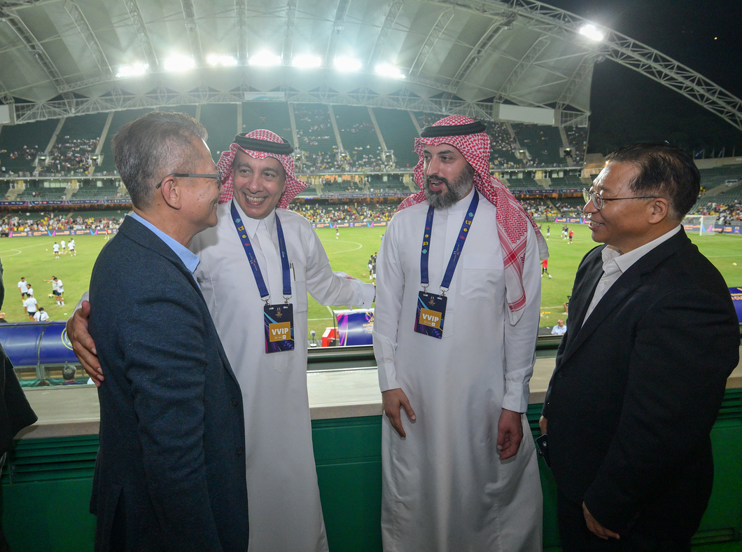 | 在沙特超級盃決賽期間,與來自沙特阿拉伯的嘉賓交流。 |
