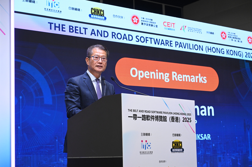 | 上周在「一帶一路軟件博覽館(香港)2025」開幕禮上致辭。 |