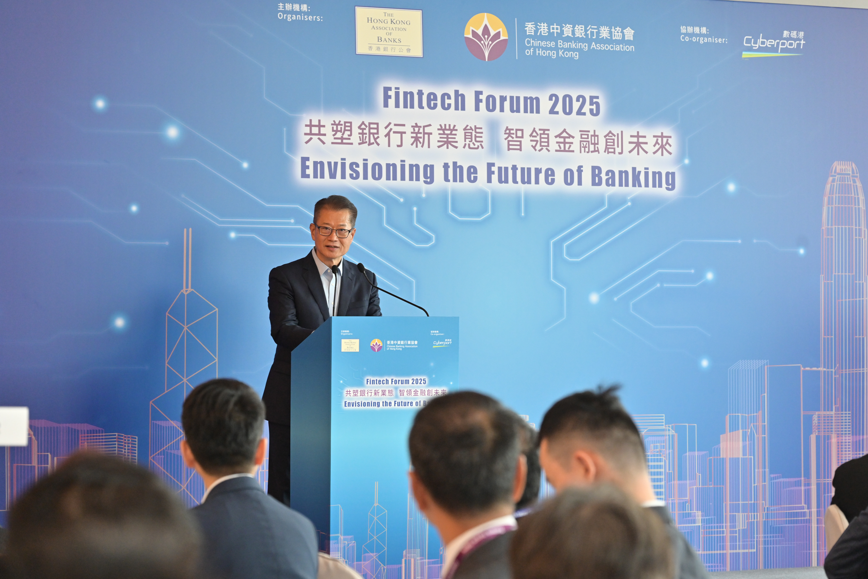 | 上周在由香港銀行公會和香港中資銀行業協會共同舉辦的「2025金融科技論壇」上致辭。 |