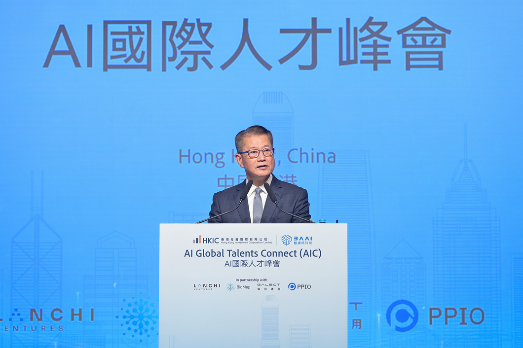 | 上周在由香港投資有限公司與智源研究院共同舉辦的「AI國際人才峰會」上致辭。 |