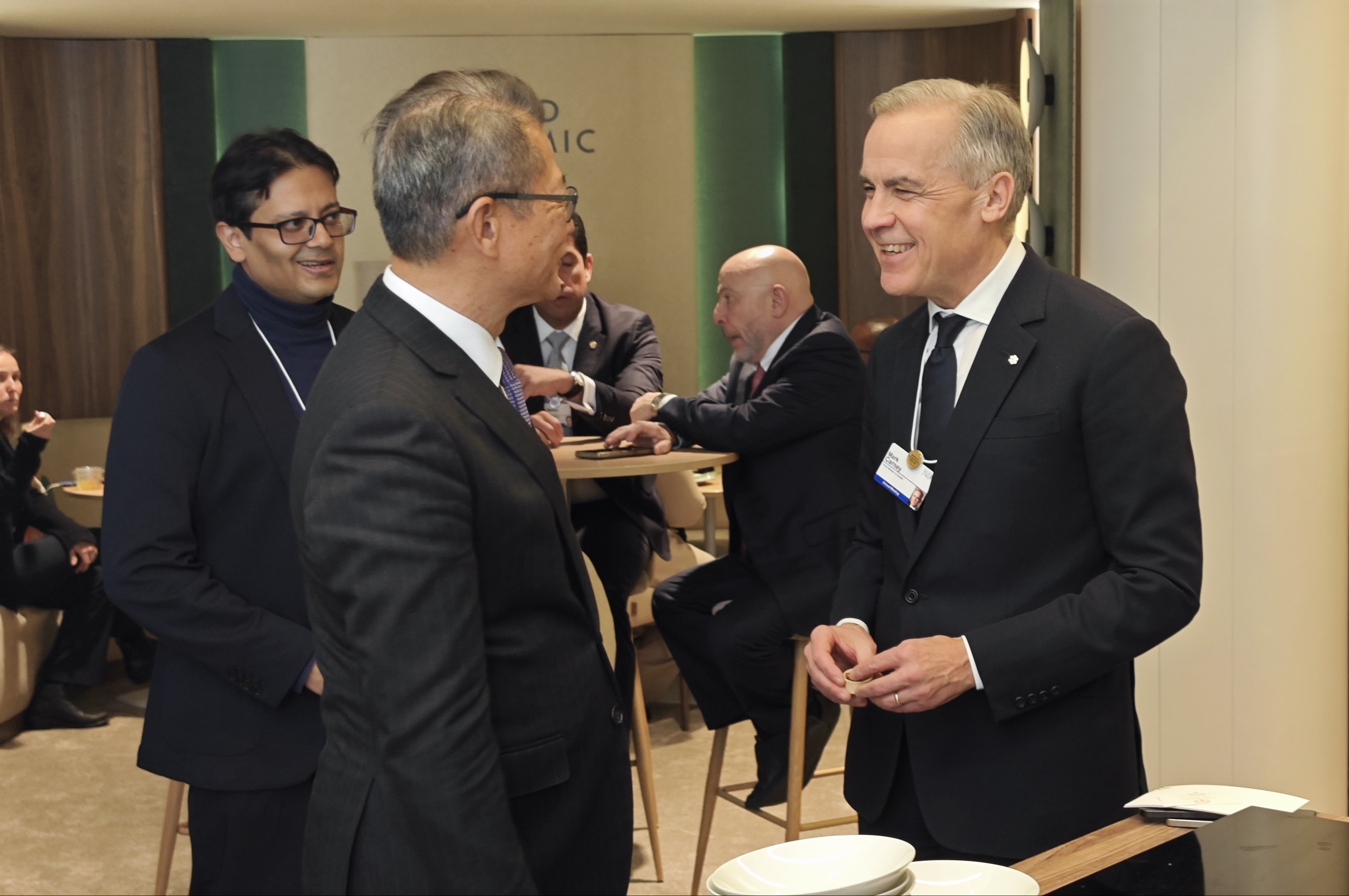 | 在「2026達沃斯‧財新CEO午餐會」上與澳洲駐美大使陸克文博士(左)交談。 |