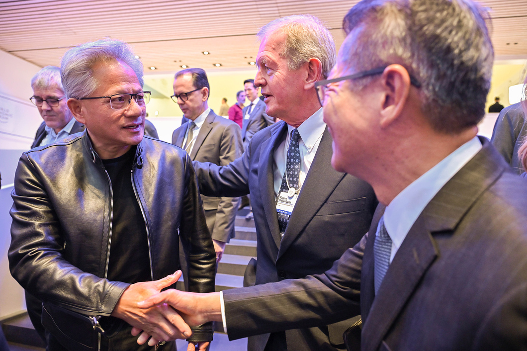 | 與輝達聯合創辦人暨行政總裁黃仁勳交談。 |