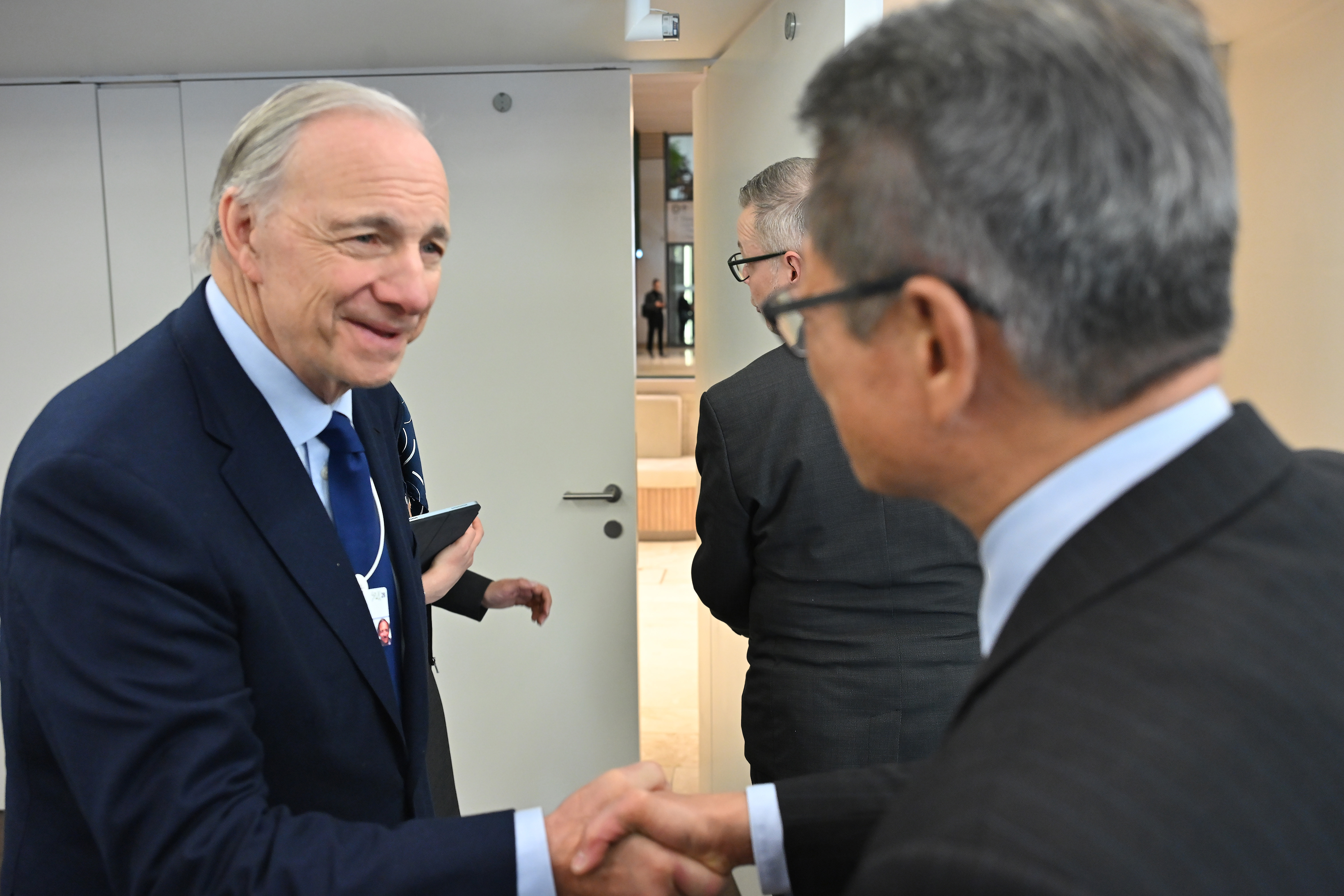 | 與橋水基金創辦人Ray Dalio交談。 |