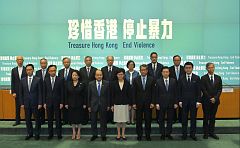 To mourn the victims who tragically lost their lives in the fire at Wang Fuk Court in Tai Po, a moment of silence was observed yesterday morning at the forecourt of the East Wing of the Central Government Offices (CGO). Flags were flown at half-mast across all Government buildings. At the condolence points set up by the Home Affairs Department in all 18 districts, members of the public came in a continuous stream to sign condolence books, each expressing their deep sorrow in their own ways. The city was in grief, with a deep sense of loss and pain felt across the community.