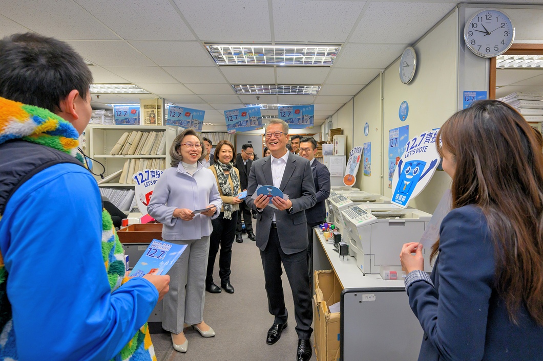 | Visiting the Office of the Government Economist and calling on the colleagues there to vote in the Legislative Council Election on December 7. |