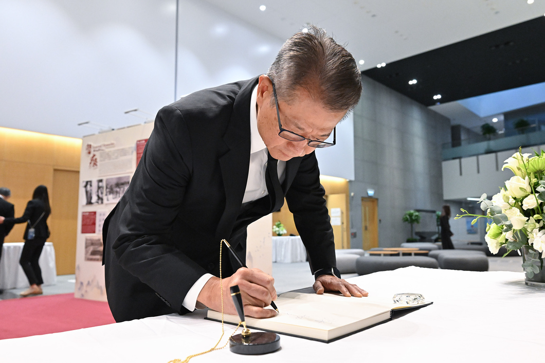 | Signing the condolence book at the CGO to mourn those who tragically lost their lives in the fire at Wang Fuk Court in Tai Po. |